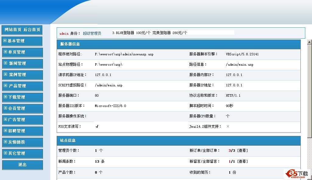 管 理 员:可新增超级管理员或普通管理员,不同级别管理员登陆后台将有不同的权限。