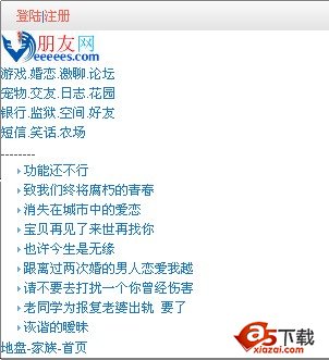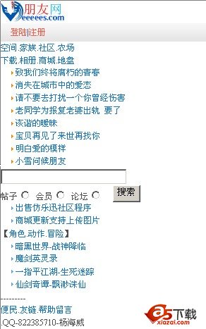 感谢大家使用! 功能如下; 空间.家族.社区.农场 下载.相册.商城.地盘 游戏.婚恋.激聊.论坛 宠物.交友.日志.花园 银行.监狱.笑话.好友 短信