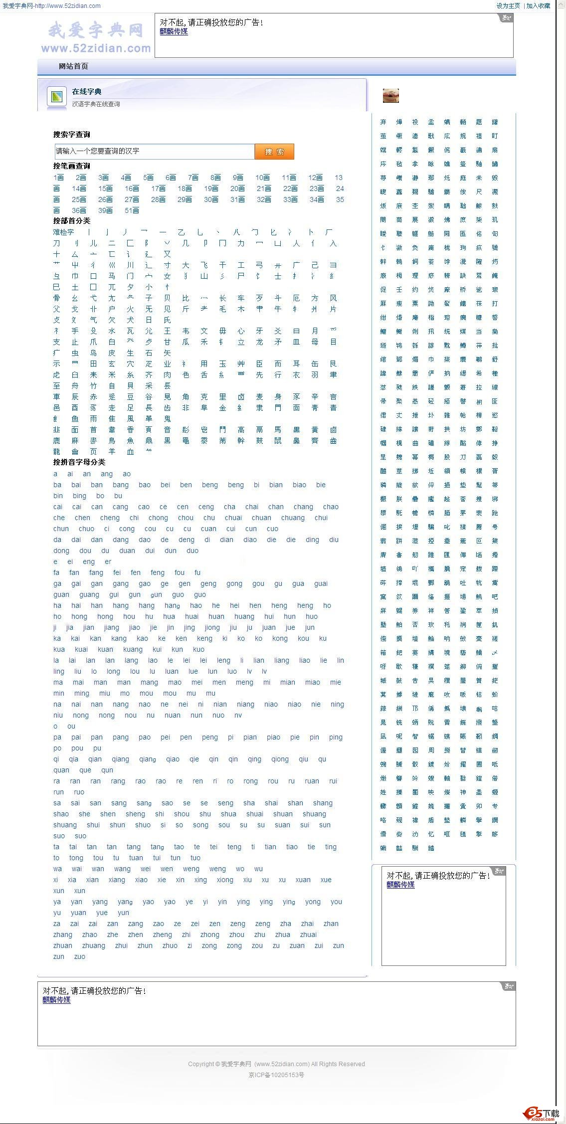 我爱字典网字典查询程序无需安装,直接上传即可使用,本程序内链优化较好,便于百度收录,没有后台,用记事本打开index.asp、cong.asp、zi.asp、top.asp、foot.asp这几个文件,然后稍微修改成自己网站的信息即可,请记得把里边的网址和广告替换成自己的!