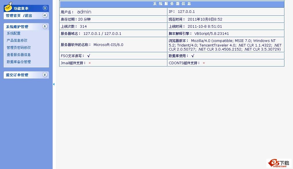 后台地址:/sys_order/admin 帐号密码:admin admin