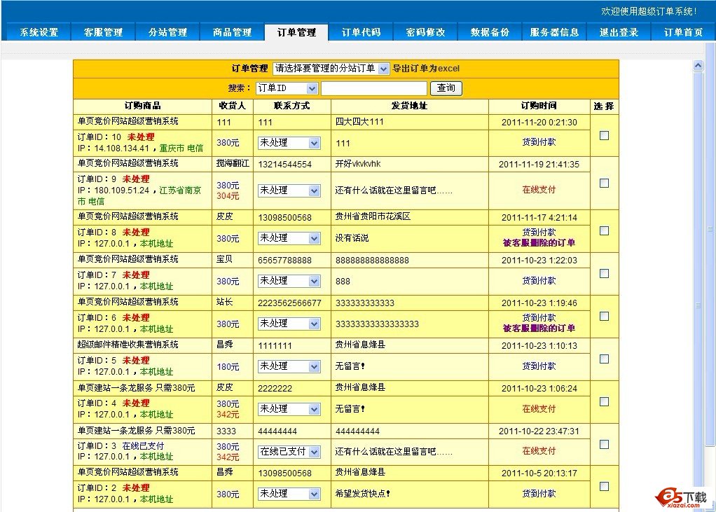 5、分站的订单后台删除了客户信息而总站还显示并且标记为分站删除处理,总站订单后台删除了客户信息就真删除了。