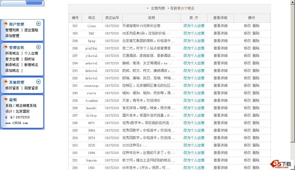 功能亮点:可谓麻雀虽小五脏俱全,功能全面,且带后台,方便增加、修改、删除域名。有购买留言功能,同时左右两侧带有悬浮框,及时显示新增和新售域名。 更多功能,你来体验。