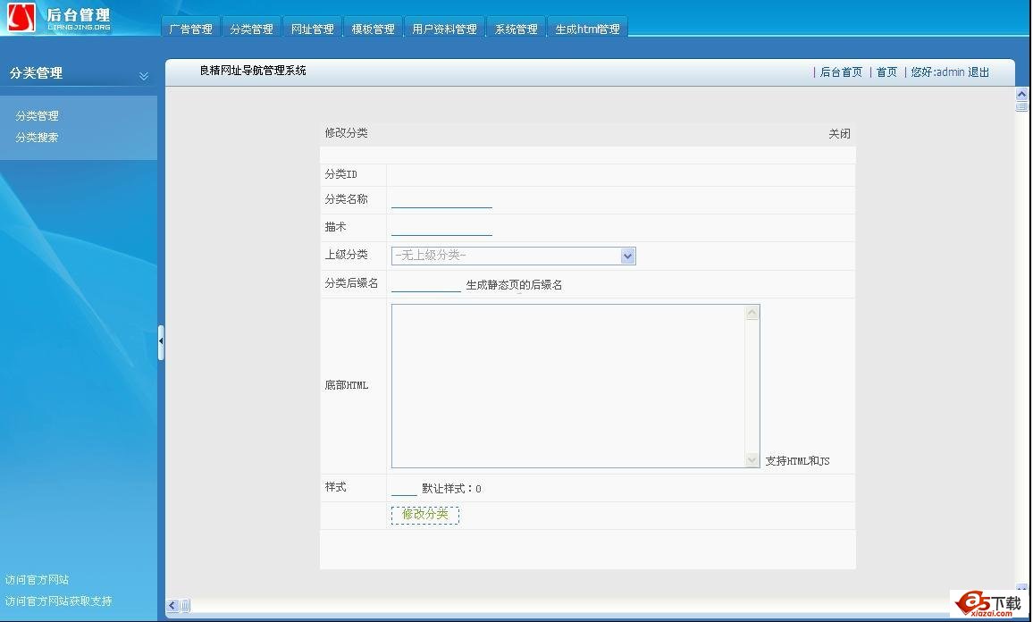 3.添加、修改、删除网站分类。
