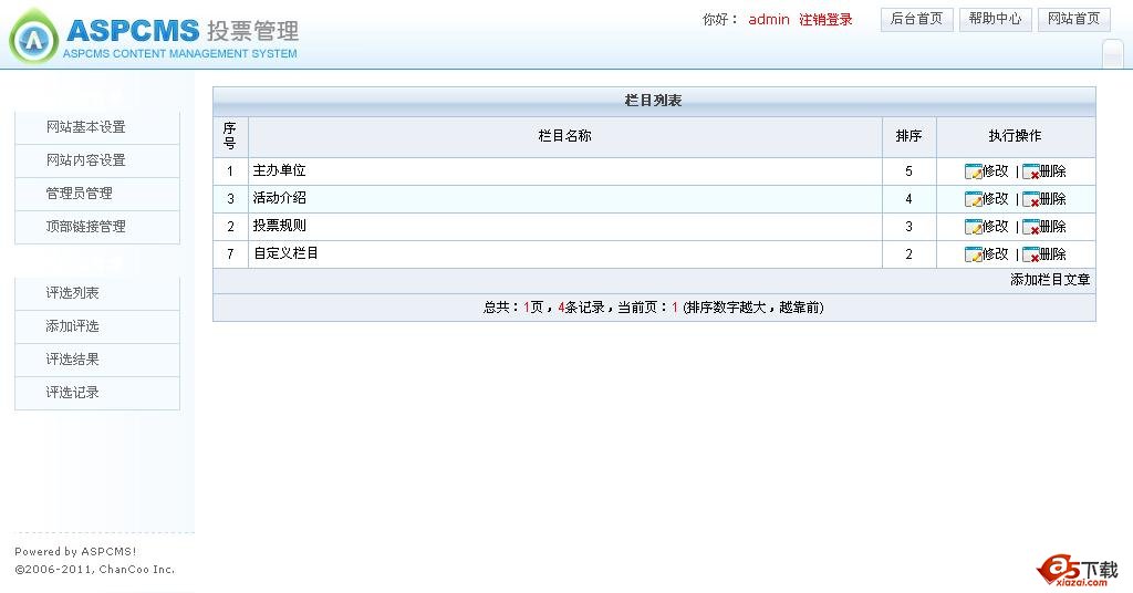 3、网站栏目可在后台内容管理中进行增、删、减、改编辑,并设置排序
