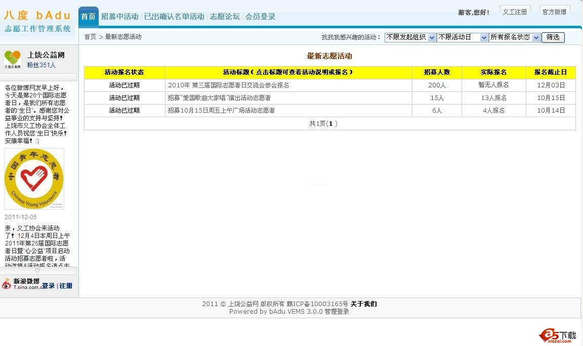 - 注册申请人的查询、管理、删除(尽可能利用志愿者资源为公益加力!)