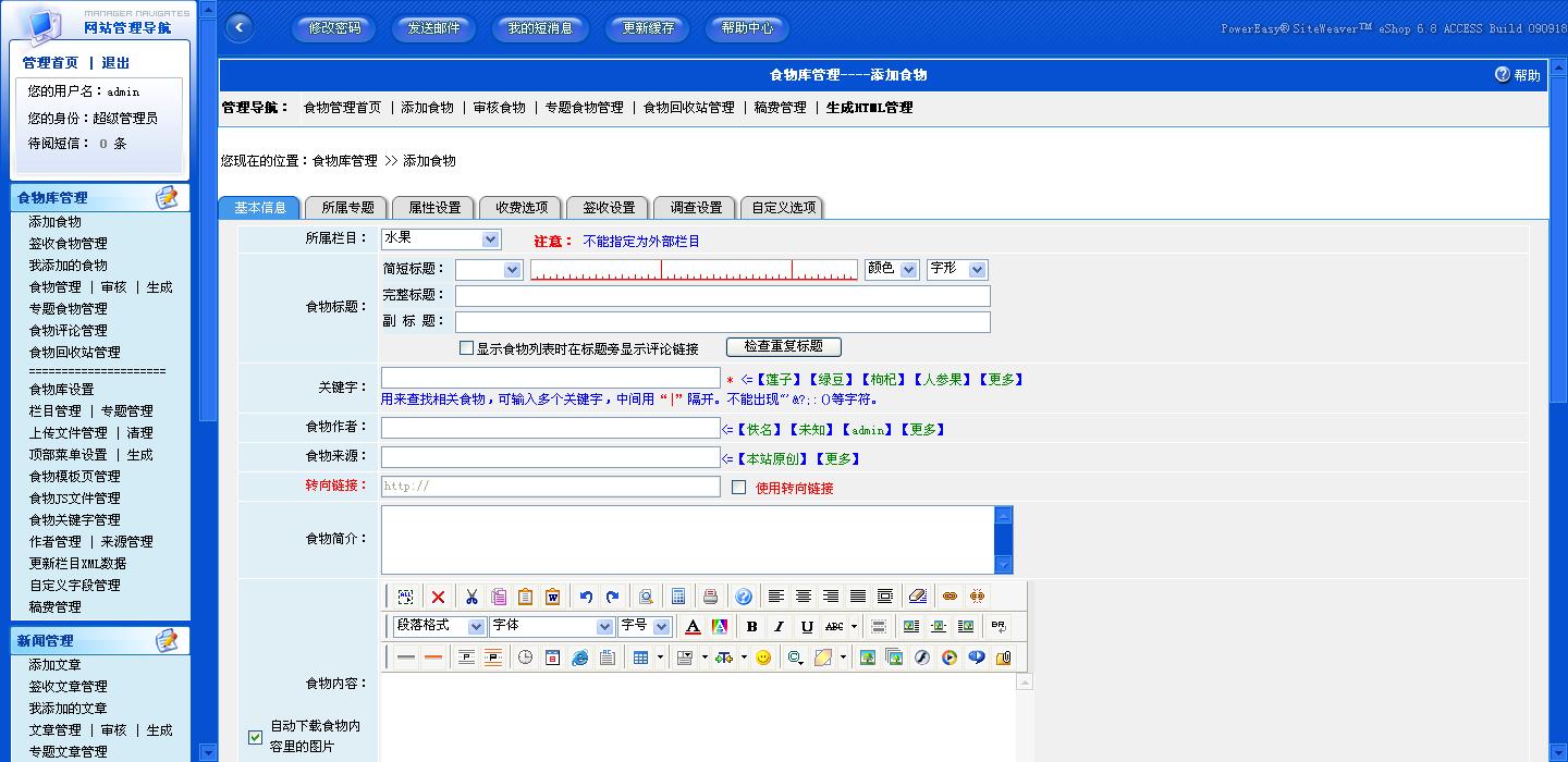 中国营养师网(asp+Access构架)在动易系统是自选修改开发,带采集!