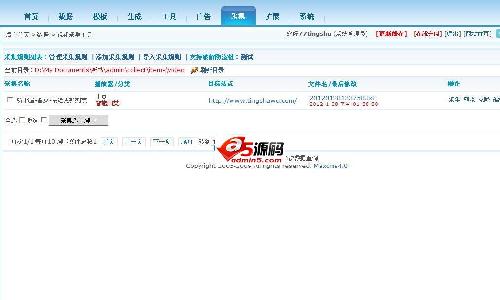 4.修改首页、频道、播放页模版,把链接指向www.zhimaquan.com,去站长站(www.chinaz.com)申请自己的统计系统代码放在首页模版里。