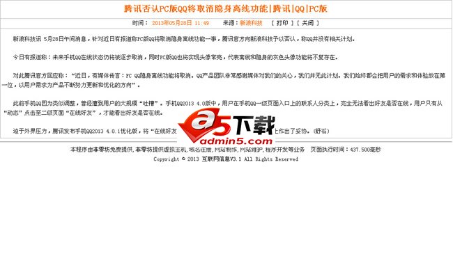 1、不用更新,直接获取互联网信息 2、将代码复制到你的程序就可以进行整合。 3、在3.2版本上增加了一个页面Show_01.asp。此页面用作调用特殊的一个栏目。