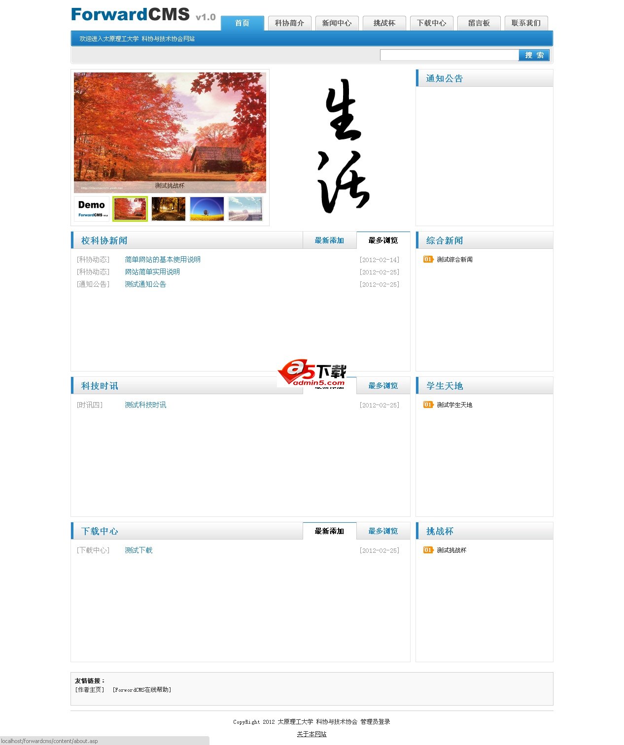 ForwardCMS的产生源自对太原理工大学科协网站的改版升级