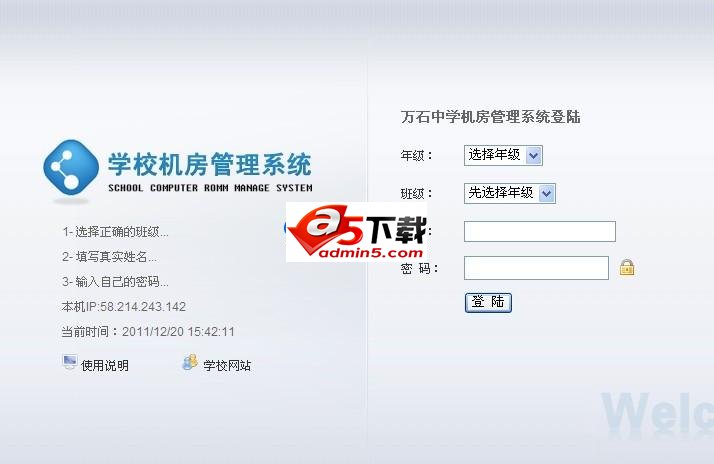 由后台管理员设置好机房,可以是自动根据机房IP判断或者指定机房,主要是适应有些学校多个机房的问题,然后学生登陆后,就可以进行使用情况的登记。(后台可以设置好使用情况,方面学生选择),默认同个学生机房登记1个小时内,只能允许登记一次!