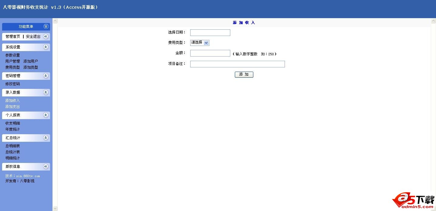 1、本程序为本人编写自己使用,现在无私送给大家免费使用。程序版权归作者所有,不能出售,违反者本人有权追究责任。 2、之前发布过v1.0(单用户版)及v1.1(多用户版)版本。从v1.2 版本起统一为多用户版。 3、安全起见,请把 data 文件夹内数据库改名后,用记事本打开 conn.asp 文件修改数据库路径。