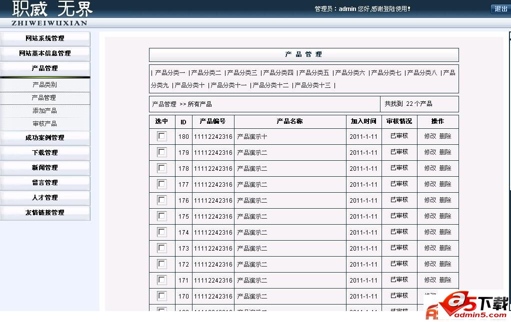 产品管理:可实现二级分类,不同的大类下边套用不同的小类。"