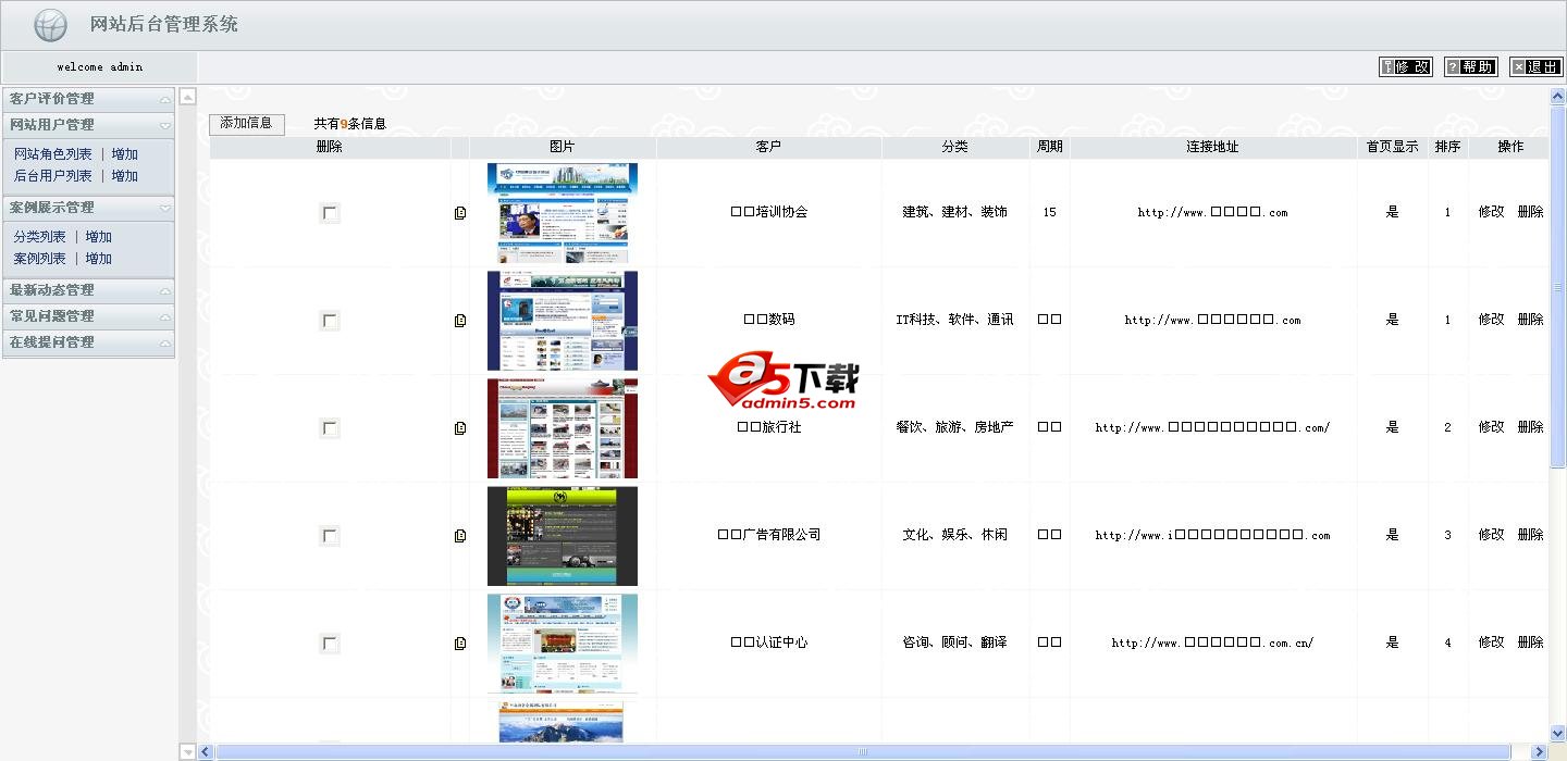 9.网站后台页面admin/admin.asp 用户名:admin 密码:admin
