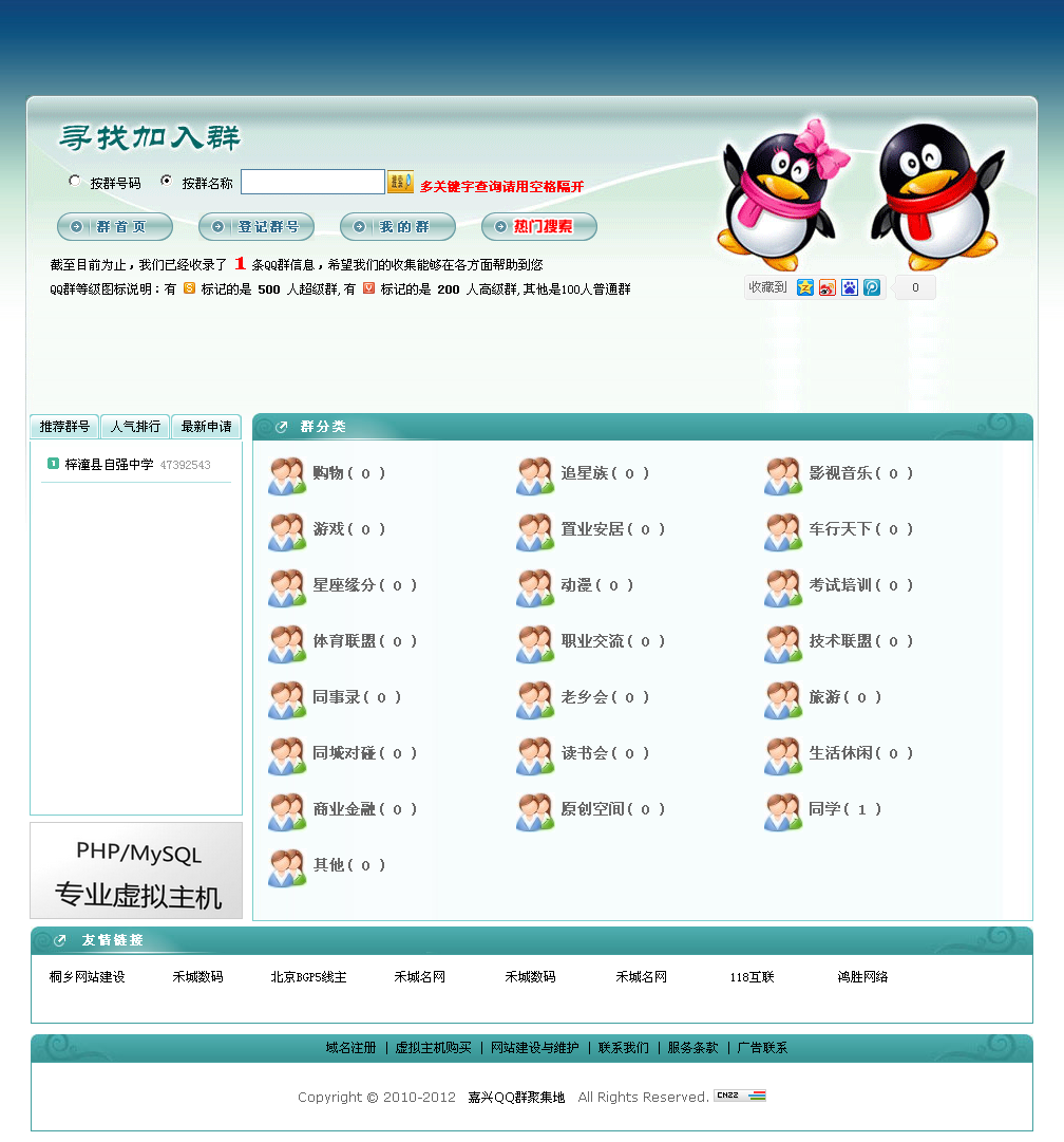 功能,登记+查看+搜索+热门+最新+广告+友情链接+推荐+删除申请+群管理 管理员后台能方便管理QQ群信息。