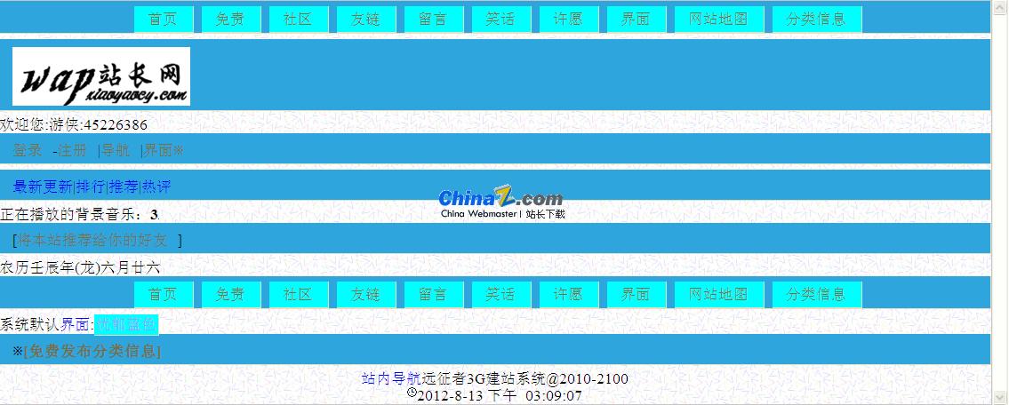 该源码由wap站长网测试发布,程序本身存在的BUG本站不负责修复,如发现BUG可以到http://xiaoyaocy.com/forum-103-1.html提交程序错误信息,