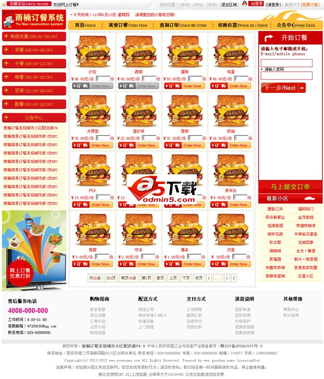 前台功能:我要订餐、查询个人订单、切换小区位置、帮助中心