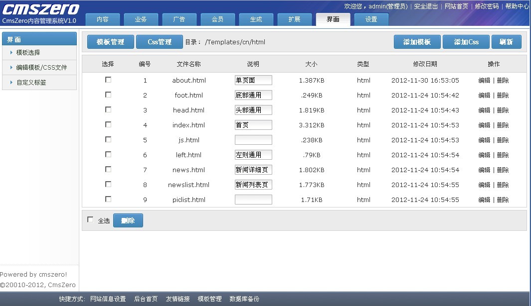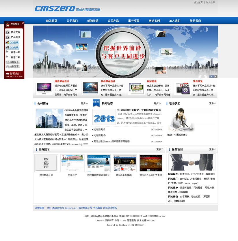 CMSZERO是免费开源网站内容管理系统,主要面向企业进行快速的建造简洁,高效,易用,安全的公司企业网站,一般的开发人员就能够使用本系统以最低的成本、最少的人力投入在最短的时间内架设一个功能齐全、性能优异的公司企业网站。CMSZERO是基于ASP+Access(sql2005)开发的网站内容管理系统,提供了简介类模块,新闻类模块,产品类模块,图片类模块,下载类模块。你在使用过程中可选择任意模块来建设您的网站。