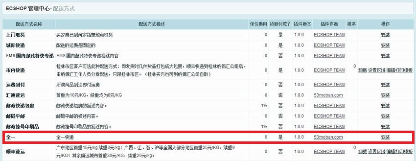 ECSHOP全一快递物流配送方式插件