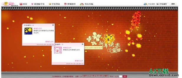 其中爱墙以下的设置都是可以自己设置哦 是否启用改模块 是否启用验证码 是否会员才能发布 是否需要审核首页显示条数 模块URL地址 安装步骤: 1.下载文件 解压到网站根目录 2.后台系统管理 模块管理 模块添加 输入 lovewall 就OK了 祝大家新年快乐!!!!!