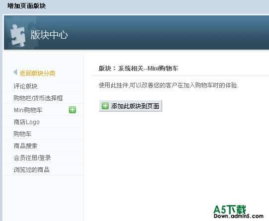 1.将挂件包[rar],解压出minishopcart文件夹[内涵三个文件].