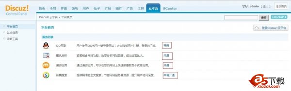 Discuz!云平台致力于帮助站长提高网站流量,增强网站运营能力,增加网站收入。 Discuz! 云平台 for Discuz! 7.2版 提供的服务包括:QQ互联、腾讯分析、纵横搜索、Discuz! 联盟、漫游应用。Discuz!云平台将陆续提供更多优质服务项目。