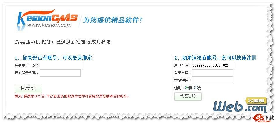 这是一款用于快速登录科讯cms v8的新浪微博登录插件,安装简单、使用方便。