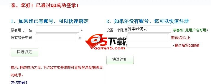 4,QQ登录注册绑定模板仿科讯CMS的QQ登录页面