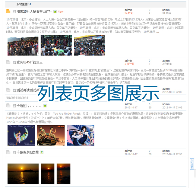 1、三种版块主题列表的展示方式(普通列表显示图片、图片列表展示、图片瀑布流展示),后期还将不断增加新的展示方式。