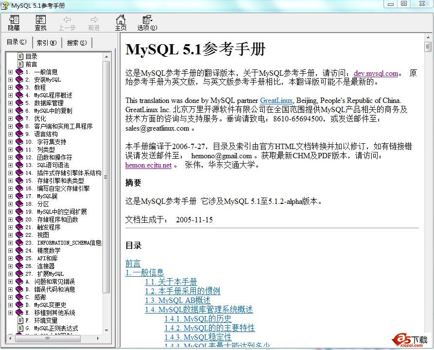 这是MySQL参考手册的翻译版本,本手册编译于2006-7-27,目录及索引由官方HTML文档转换并加以修订.