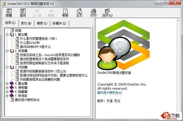 《织梦DedeCms 常用问题手册》总共分为概念篇、安装篇、升级篇、整合篇、使用篇、销售篇、其他类几个部分,每个部分选了用户常见的一些使用问题,将其打包为CHM文件,提供大家下载阅读,并且手册会以后进行更新,收录更多常见使用问题,欢迎大家下载观看。