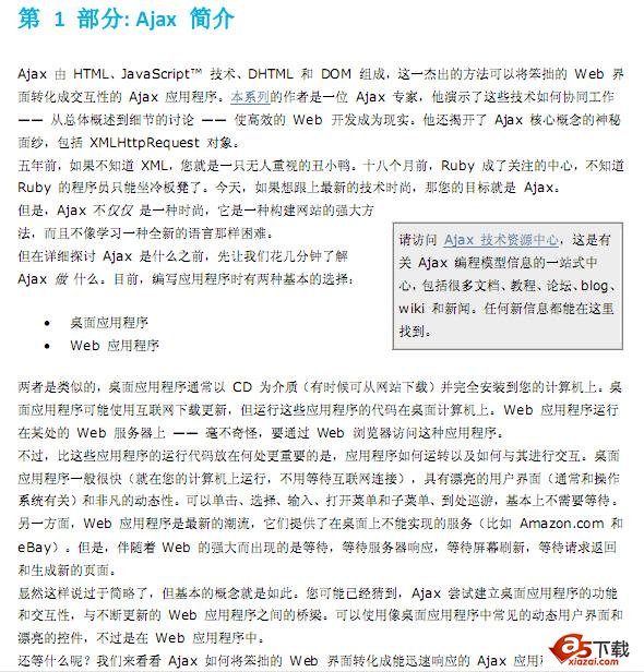 《由浅入深完全掌握Ajax》整合ibm网站的ajax系列教程,各个章程结合的很紧密。系统介绍了ajax的相关内容。包括健壮的程序编写、数据格式及数据格式的操作方式和数据格式之间的优势比较和使用场合。介绍的相当详细,是学习ajax的不错的学习资料。