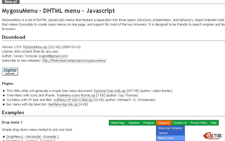MyGosuMenu是一个DHTML(java script)的菜单,功能分为三个层次(结构,表达和行为),面向对象的代码,使得它可以创建一个页面上许多菜单,并为最关键的浏览器支持分离设置。它的设计对搜索引擎和文本浏览器是友好的。 MyGosuMenu 1.5.8 更新日志: 添加DynamicTree/tests/foldersAsLinks2.html DynamicTree/example3.php加入 - 发电树使用PHP与MySQL