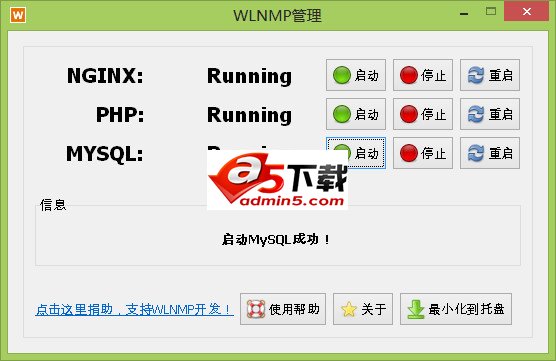 我们开发的WLNMP是在尽量不改变原系统设置的情况下,尽最大努力对系统做了优化和简化,让服务器既可以正常工作,又不过多占用资源。我们把复杂的命令变成简单的可视化界面,让您不需要掌握专业的服务器知识,就可以无障碍地搭建自己的服务器。服务器开启、重启、关闭清晰明了,只需要动动鼠标即可操控服务器。