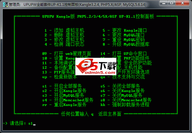 快速的Kangle+PHP+MySQL+memcached集成服务开启与关闭。