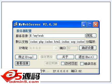 MyWebServer是一款专业的轻量级WEB服务器软件。软件具有高性能、易用、小巧、绿色等特点,是用户快速建站及个人HTTP文件服务器的难得工具。软件功能强大,可以实现包HTTP/1.1、断点续传、大文件下载、正则表达式URL重写、虚拟目录、HTTP反向代理等,可通过ISAPI接口、FastCGI接口实现执行服务器脚本等诸多功能。软件界面美观简洁、简单全面、实用方便,无需培训,即可快速上手,轻轻松松完成日常用户快速建站及个人HTTP文件服务器功能,真正做到简单全面实用。是用户实现用户快速建站及个人HTTP文件服务器功能的好帮手。