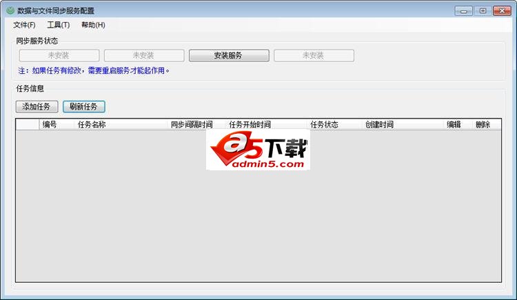 1、同步程序为Windows服务,配置完任务时必需安装并启动服务