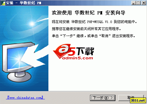 欢迎使用华数世纪PM一键安装系统,本安装程序绿色环保,不写系统文件MySql的root密码为小写chinadatas.com,请及时修改,MySql服务运行于安全账号 mysql_chinadatas下PHPMYADMIN站点请点击桌面链接和菜单链接