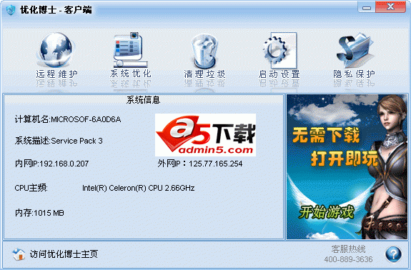 “优化博士”,是一款基于互联网的在线电脑免费服务,秉承“为客户创造价值”的理念,建立了一整套以“优化博士”远程维护软件为基础的PC虚拟上门维护解决方案。为计算机终端用户提供人工远程在线系统修复,病毒查杀,数据修复、备份,软件安装、卸载,并为合作企业提供全面。
