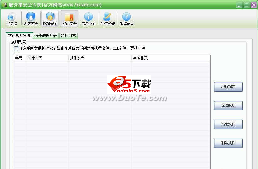 (4)文件安全:通过开启系统盘保护功能或者自定义添加文件规则可以有效的保护服务器系统盘、文件夹,有效防止木马程序攻击。