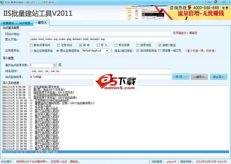 亿奇IIS助手批量建站工具只要您导入域名列表,选择被复制的程序,就能批量复制站点,并绑定到IIS;让您避免手工重复操作,节省大量时间,是网站群搭建和服务器迁移的必备工具。