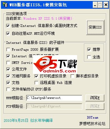 该自动安装程序简化了安装IIS的繁琐步骤,且无须操作系统光盘方便携带,各组件可选安装