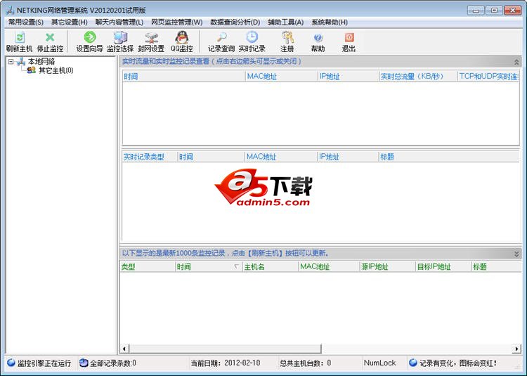 能够监控Web访问、FTP文件传送、电子邮件收发、TELNET、QQ、MSN聊天、YAHOO聊天、阿里巴巴贸易通、淘宝旺旺、SKYPE登录、P2P下载(如BT、eMule、PP点点通、POCO、卡盟、酷狗等)网络流量、网络过滤、无线网络监控等;