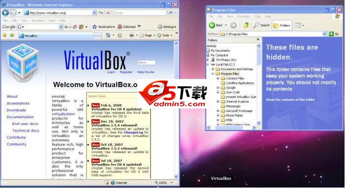 VirtualBox最早是德国一家软件公司InnoTek所开发的虚拟系统软件,后来被Sun收购,改名为Sun VirtualBox,性能有很大的提高。因为他是开源的,不同于VM,而且功能强大,可以在 Linux/Mac 和 Windows 主机中运行,并支持在其中安装 Windows (NT 4.0、2000、XP、Server 2003、Vista)、DOS/Windows 3.x、Linux (2.4 和 2.6)、OpenBSD 等系列的客户操作系统。假如你曾经有用过虚拟机软件的经历的话,相信使用 VirtualBox 不在话下。即便你是一个新手,也没有关系。VirtualBox 提供了详细的文档,可以助你在短期内入门。