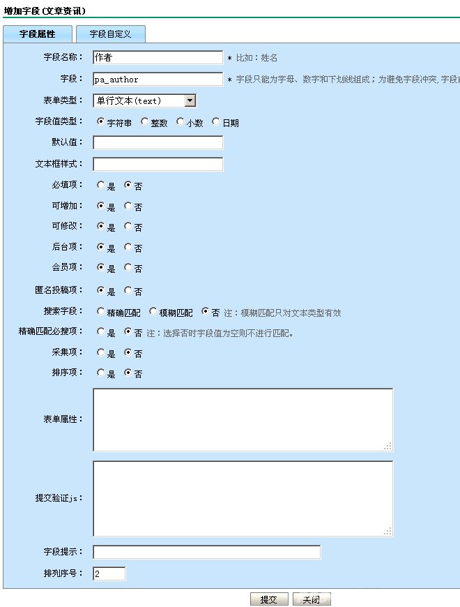 按需求和说明填写好字段资料,点击提交按钮就可以增加新的字段。