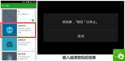 操作:微信锁-锁伪装-伪装密码-按照提示重复输入两次密码即可设置成功。