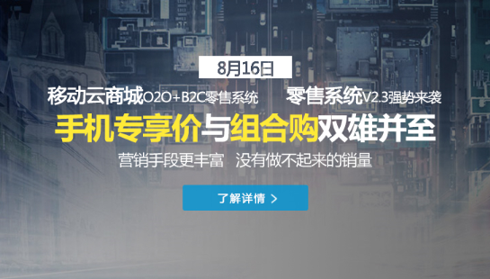 据最新消息,HiShop移动云商城已于8月16日上午10点正式对外发布最新的V2.3版本。HiShop作为国内领先的电商软件及服务提供品牌之一,其旗下的移动云商城是一款专注于营销的B2C+O2O零售商城系统,已于贵州茅台、远大集团及江西卫视等知名企业有深入合作。