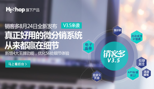 然而,自主建立微信商城并不是一件简单的事情,从网上商城系统的选择、商城后期的推广宣传是十分复杂的过程。对于刚开始做微商城的新手们来说,物色一款将卖货、管理、策划、运营融为一体的商城系统才能降低成本、减小风险。作为一款专业的微信商城系统,销客多以出色的体验赢得了广大客户的认可。8月,HiShop旗下明星产品——销客多再次赢来新一轮的升级,从四个维度全面提升服务,让个人创业者和企业均能轻松开展微信商城。