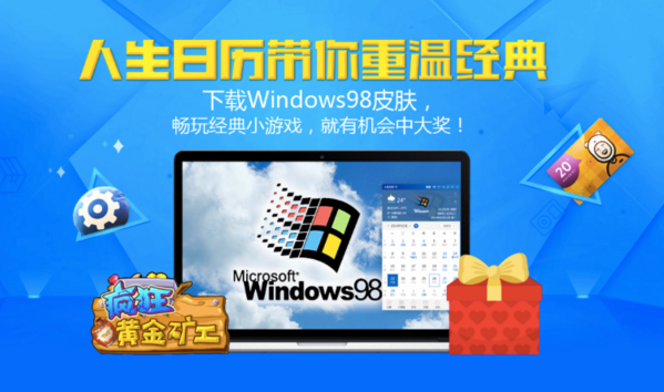 想要重温经典windows98的朋友,想要重新找回游戏乐趣的朋友,想要赢得大礼的朋友,本次活动绝对不要错过。重温经典,共赢大奖,您还在等什么,快去人生日历下载经典的windows98皮肤,玩起小游戏赢取大奖吧!