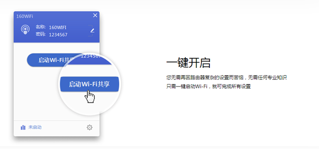 很多免费WiFi软件,使用的过程非常复杂,没有一定电脑知识的人,基本上都玩不转,但是160WiFi却不会,无需繁琐的设置,只要下载软件之后一键即可开启WiFi,就算是家中的父母也能轻松的使用,就算你现在不需要,那么为您的父母装一款160WiFi也是非常有必要的。