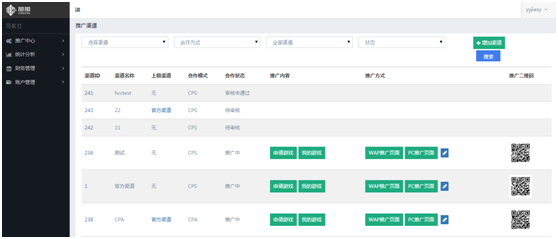 在推广中心-【推广渠道】-【我的游戏】中,每款游戏新增二维码和分享功能,通过到扫码或是复制分享链接将游戏推广出去。